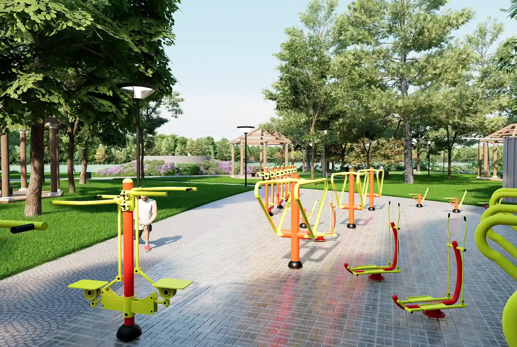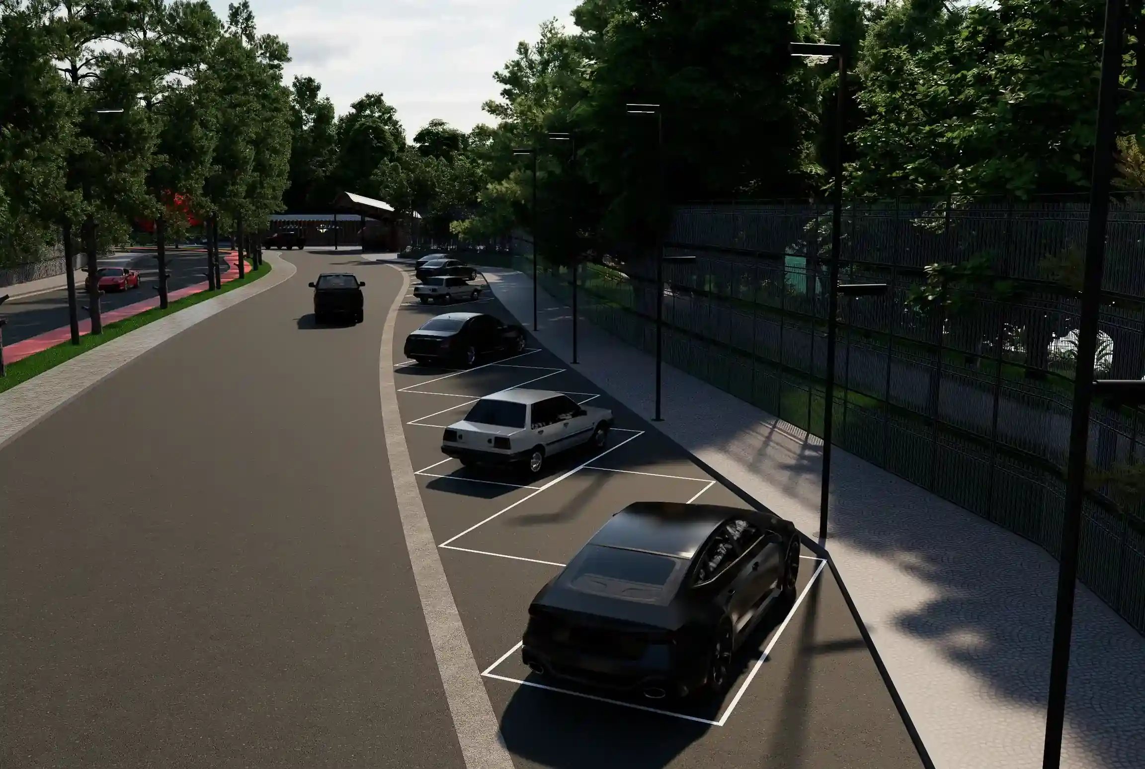 La calle Km 12 Monday se reconfigura como eje de accesibilidad y paisaje, incorporando infraestructura verde y equipamientos que refuerzan la vocación recreativa del área.